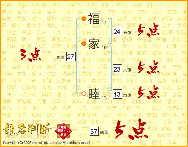 福家睦さんの運勢 | 姓名判断 名前の画数から無料で |