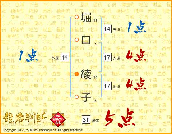 堀口綾子さんの運勢 | 姓名判断 名前の画数から無料で |