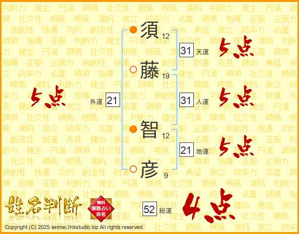 須藤智彦さんの運勢 | 姓名判断 名前の画数から無料で |